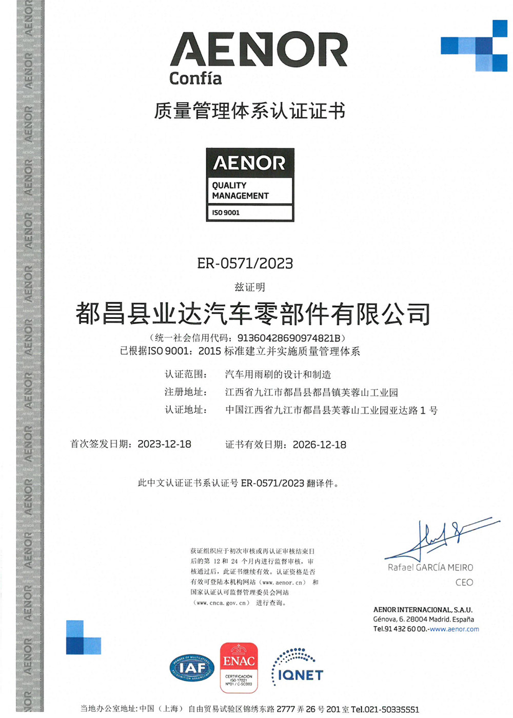 Certification ISO9001